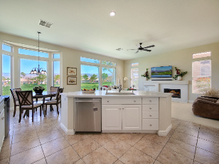 2 bdrm + office, remodeled kitchen and family rm, pool & spa, covered patio, newer air conditioners in home & garage, kitchen w/island and pantry, quartz counter tops, family room w/TV over fireplace, laundry room, garage for 2 cars+golf cart, all furnishings available. |