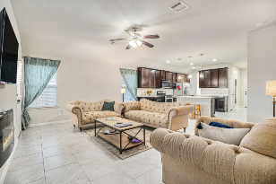 NO FLOOD(x-zone)-3BR Open Concept Chefs Kitchen-Living/Family Rm. Granite counters-center island brkfst bar+pantry-High Ceilings-Primary BR w/walk-in closet, double vanity, garden size soaker tub, separate shower. HOA includes all amenities of the 12-acre Crystal Lagoon, resort-style pools, splashpad, trails, two fitness centers-Soon Pickleball Crt
